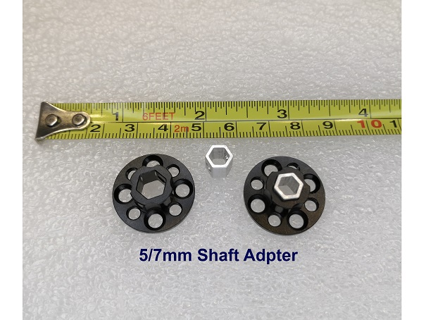 Spacer can drive the 5mm Hex Shaft. Additionally, this adaptor can be used as a Shaft Collar.